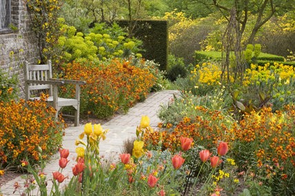Gardens of harmonious colour are not only beautiful to look at, but they also affect our mood Adding a colour theme to your garden will not only have these benefits, it really helps the gardener and designer. This is because a theme helps to narrow down the focus of the plant search by adding colour to the selection, in addition to the other conditions (amount of light, minimum temperatures, soil type, soil pH etc) that the prospective plants need to be able to cope with. With such a vast selection of plants to choose from, adding colour to the criteria will make the range of choices easier to manage. Three of the main colour themes link to the colour theory rules discussed in the previous blog, these are warm and cool themes which are associated to the analogous rule, and a single colour scheme which is the monochromatic rule. This link to the colour theory rule explains why these themes work so well.