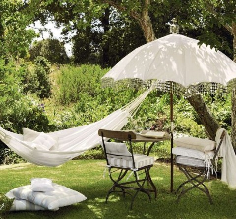 Create an area to relax in by adding a canopy or sun shade, some cushions and comfy chairs and somewhere to put your sun-downers.