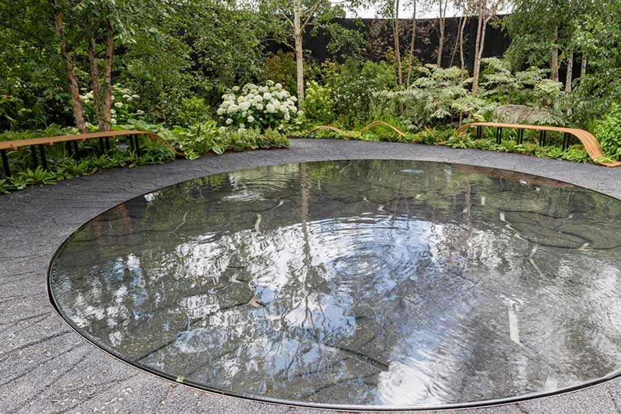 Still water creates amazing reflections that really add another dimension to a water feature. By adding a black dye to the water, the reflection intensifies.