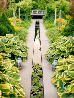 There are many ways to bring water into a garden – ponds, fountains, bubbling water features, water walls etc. A popular choice with designers is a rill, a shallow and narrow 'path' of water that can stop abruptly or feed into another water feature.They can be a slightly safer choice with children around, but all children should be supervised near any water in your garden. Further examples of rills are in our earlier 'How to change your garden..' blogs on Repition and Focal Points